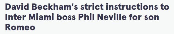 来源:24直播网09-22 11:3024直播网9月22日讯 据英国媒体《镜报》报道,迈阿密国际主帅菲尔-内维尔在接受采访时表示,贝克汉姆告诉他不要特别照顾自己的儿子罗密欧,反而对他要比对其他人更加严厉。