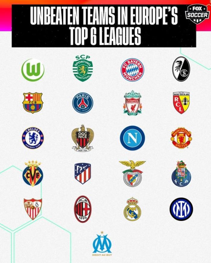 24直播网9月22日讯 根据数据统计,新赛季欧洲积分前六的联赛至今仍有21支球队保持不败。