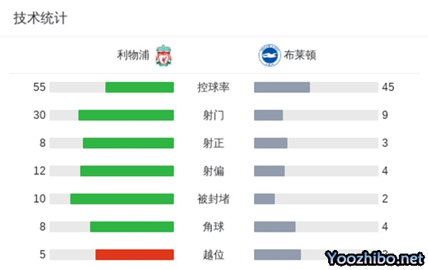 最终利物浦主场2-1逆转布莱顿。