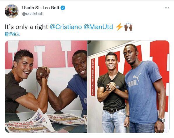24直播网8月28日讯昨晚C罗回归曼联,作为C罗的好友以及红魔球迷的尤塞恩-博尔特更新个人社交媒体,庆祝C罗重返曼联。