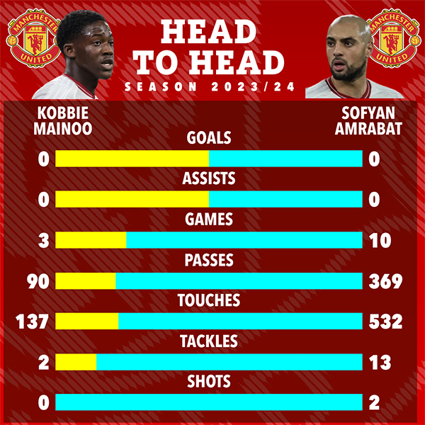 阿姆拉巴特在2022年卡塔尔世界杯发挥神勇,因此曼联球迷对他的加盟充满期待。可惜,在他为红魔出战的17场比赛中,并没有明显改善球队的中场攻防。如果有什么变化的话,那就是他越踢越差,如今的发挥水平还不如刚来时。