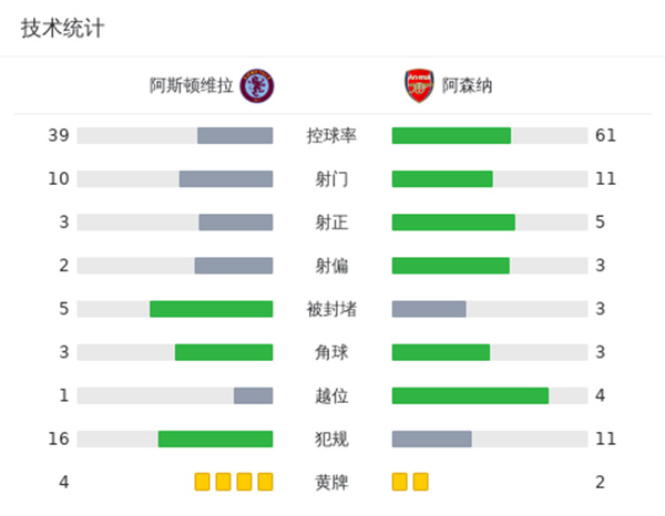 阿森纳0-1维拉 热苏斯被踢倒未判点哈弗茨进球被吹