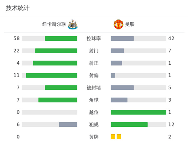 曼联0-1遭纽卡 戈登制胜曼联仅1次射正纽卡狂轰22脚