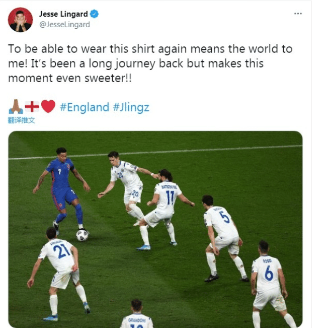 当然,林加德表现出色,对手也是看在眼里的,比赛中林加德中场拿球,对方甚至有6名球员围住林加德来防守他。不得不说,这绝对是巨星的待遇,此前只有梅西、马拉多纳等球星享受过这样的待遇哦。而林加德赛后也发推表达自己的兴奋,“非常开心回归国家队,穿上这件球衣对我来说意义非凡。”而林加德的配图就是对方六人防守他的画面。