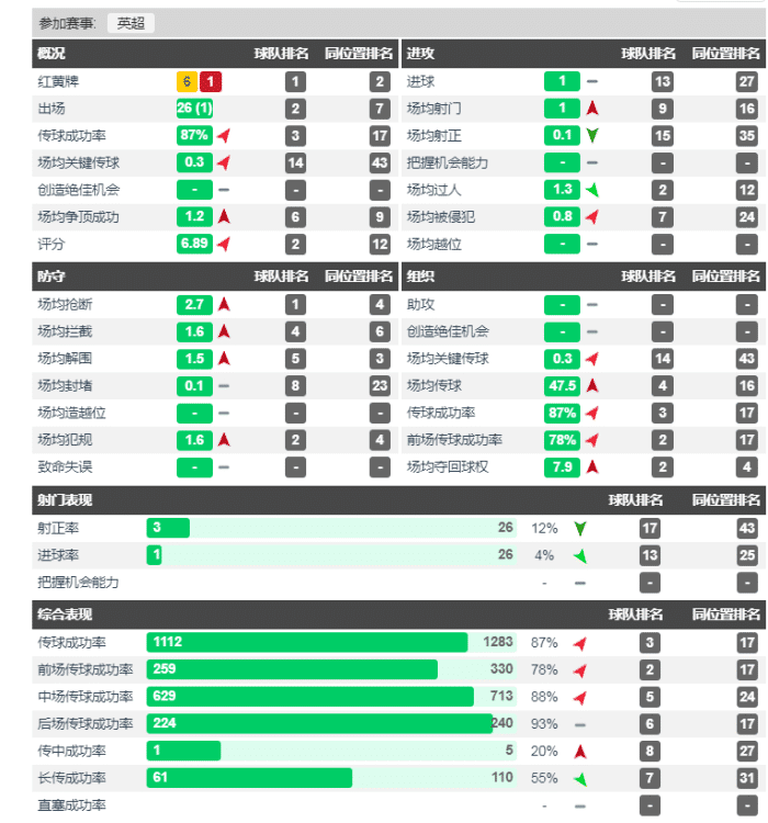 英超五大防守型中场数据对比,谁是英超最佳防守型中场?