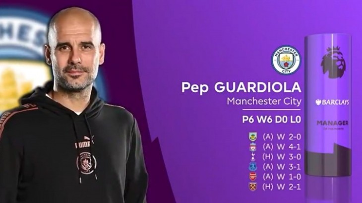 六战全胜!官方:瓜迪奥拉当选英超二月最佳主帅