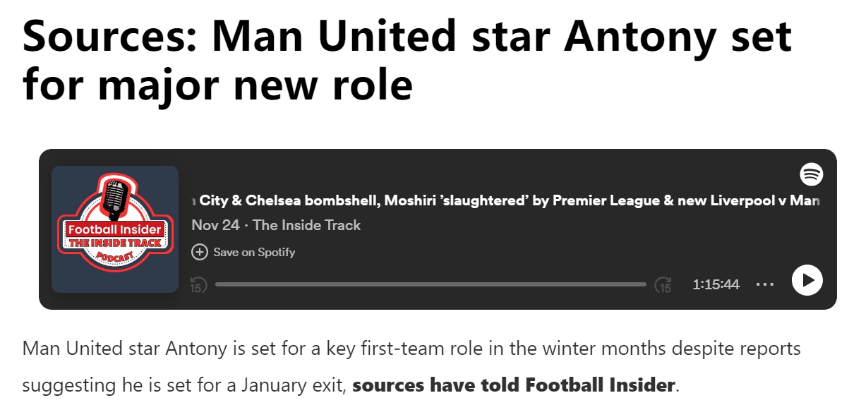 球迷和专家都对安东尼的表现持批评态度,尤其是他的数据成为人们诟病的焦点。安东尼在2022/23赛季的所有比赛中出场44次,打进8球和助攻3次,虽然不算特别出众但至少还有输出。但新赛季他还没有参与任何进球,却依然在红魔50%的比赛中都入选了首发阵容。