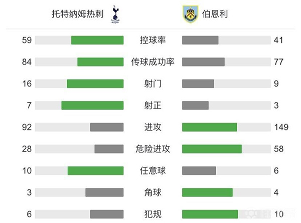 全场比赛结束,热刺4-0伯恩利。