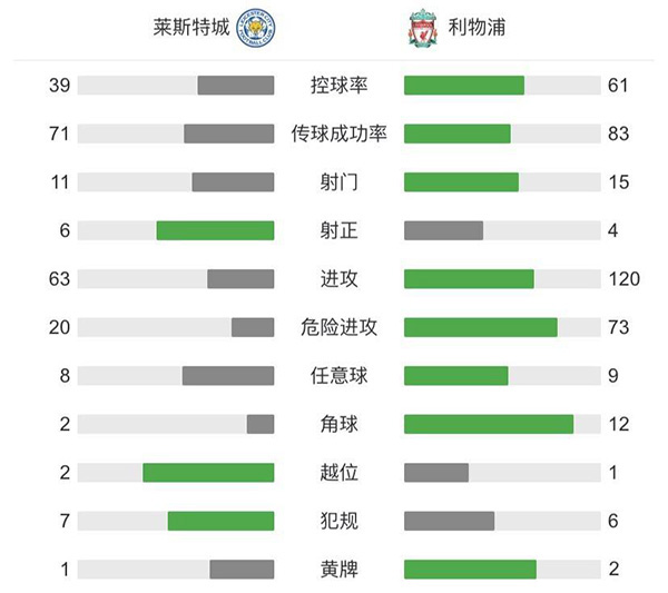 第66分钟,禁区里右侧阿诺德倒三角回传,菲尔米诺小禁区前沿一拉一踩晃开防守后回传身后的萨拉赫,萨拉赫随后兜射得分,利物浦1-0莱斯特城。