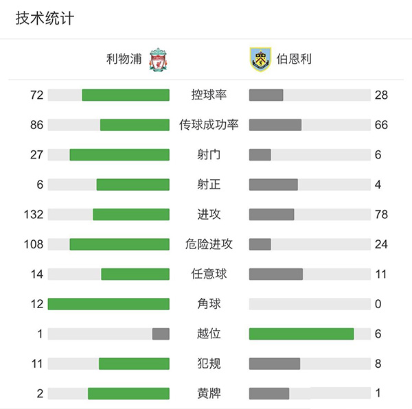 第43分钟,伯恩利后卫本杰明-米解围出现失误,奥里吉断球后狂奔30米禁区弧顶内单刀面对波普射门,皮球击中横梁,利物浦错失破门良机。