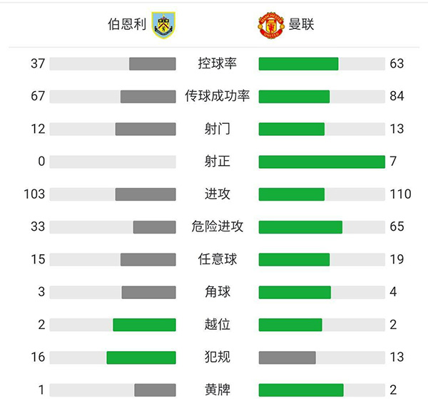 曼联1-0伯恩利 博格巴凌空斩马夏尔失单刀