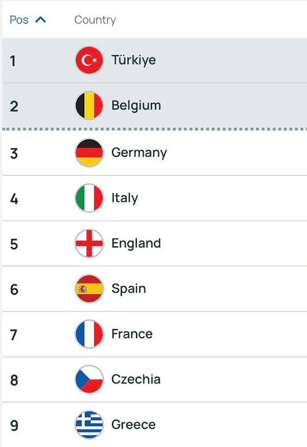 也就是说,今后的每个赛季,所有欧足联足球协会都会根据其俱乐部的集体系数进行评级,总积分除以参赛球队的数量,得出一个系数和一张排名榜,前两名的联赛将获得更多的欧冠名额。
