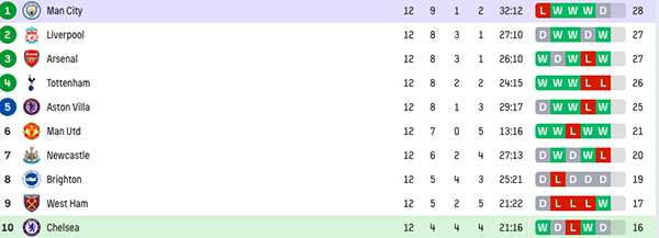 此役被逼平丢分后,曼城12轮9胜1平2负积28分。而由于本轮阿森纳和利物浦双双取胜,两队12轮过后战绩都为8胜3平1负积27分,只差了曼城1分。