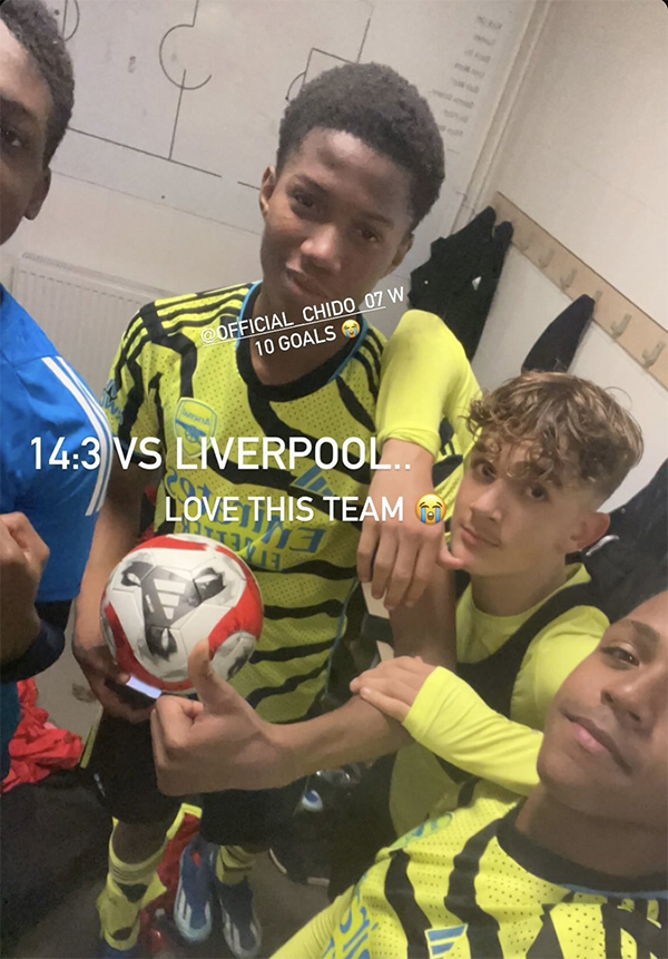 奥比马丁上赛季一战成名,因为他在阿森纳16岁以下青年队与利物浦的一场比赛中大发神威,一人独进10球!那场比赛的比分自然也非常惊人,枪手14-3大获全胜。