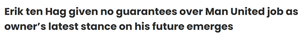 根据GMS消息人士的说法,滕哈格已经迎来决定其执教曼联前途的最关键一个月(Erik Ten Hag Entering Crucial Month at Man Utd),管理层迫切希望看到他将他的球队带到一个新的水平。尽管俱乐部两大高层——首席执行官奥马尔·贝拉达和体育总监丹·阿什沃斯本月早些时候公开称他的帅位没有受到威胁,但他实际上没有得到承诺在赛季结束前肯定不会下课。