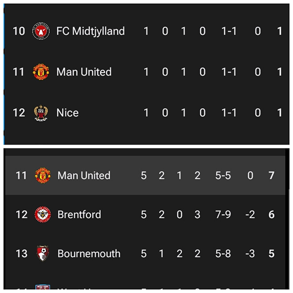 新赛季开始后,曼联前5轮联赛只赢过2场,也输了2场,别说进入前四,排名甚至不在前10位。目前,红魔位列积分榜第11位。不过,几场比赛就能改变局势,例如若能主场战胜热刺,滕哈格的球队就将上升到第8位。
