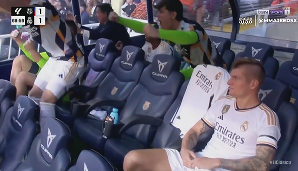 作为皇马五次欧冠的捧杯功臣,如今克罗斯已经不再是银河战舰的常规主力。他本赛季的12次出场中,有6次是替补上阵。在皇马2-1击败巴萨的西班牙国家德比,他进入了先发阵容,但被换下后球队才实现逆转,当贝林厄姆进球时,替补席上的克罗斯似乎无动于衷,只是反应迟钝地鼓了几下掌,显然并不快乐。