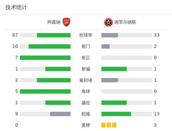 第27分钟,赖斯45度角斜传到禁区,恩凯提亚扣过特鲁斯蒂后推射得手,阿森纳1-0谢菲尔德联!