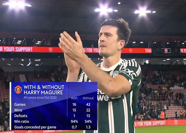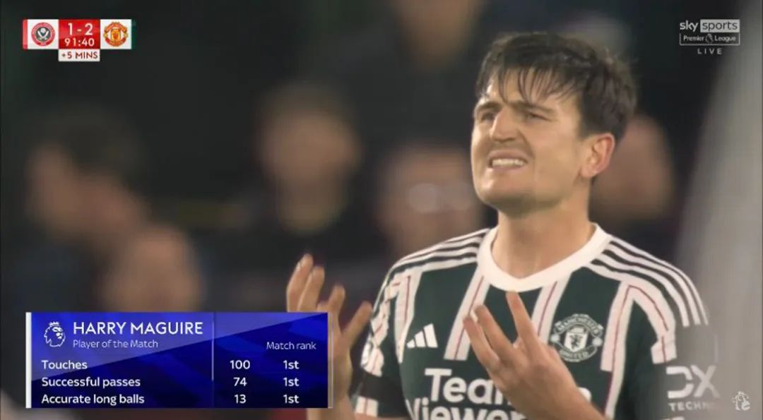 凭借精彩的发挥,马奎尔在布拉莫尔巷球场接过了官方颁发的本场最佳奖座,「竞技网」称,30岁的8000万英镑铁卫笃定将在下周日主场对曼城的德比战首发出场,瓜迪奥拉过去也曾试图签下他。尽管这是因为利桑德罗·马丁内斯、卢克·肖等后卫受伤的缘故,但马奎尔的表现或许也超出了预期。当然,他还需要继续证明自己,因为曼城不是谢菲联,马奎尔高达94%的胜率也不是其能力的准确体现。数据显示,2022年10月以来各项比赛中,曼联有马奎尔的比赛取得94%的胜利,而没有他则降至54%,他出场的比赛曼联只输了一次,场均丢球仅有0.7个。
