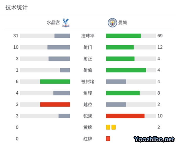 客场6场5负1平 曼城2-2水晶宫 刘易斯破门+染红沃克漏人致丢球