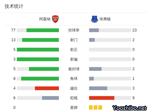 阿森纳0-0埃弗顿联赛两联平 阿森纳13脚打门两失良机