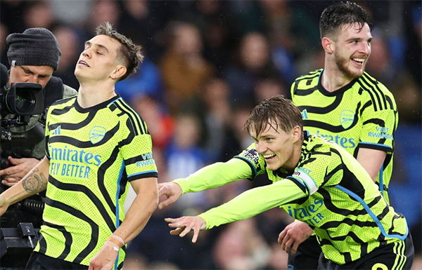 本轮比赛,阿森纳主帅阿尔特塔启用433阵型,热苏斯、哈弗茨、萨卡搭档三前锋,赖斯、若日尼奥、厄德高搭档三中场,津琴科、加布里埃尔、萨利巴、本-怀特搭档四后卫,门将戴维-拉亚,首发11人身价高达7.57亿欧元,全队身价则高达11.2亿欧元,阿森纳不管是阵容强度还是状态都达到了与曼城一个级别。布莱顿全队身价只有5亿欧元,而且受到伤病困扰,此役无法阻挡阿森纳的强攻。