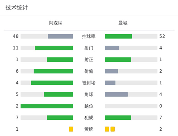 阿森纳1-0曼城 马丁内利绝杀科瓦西奇犯规引争议
