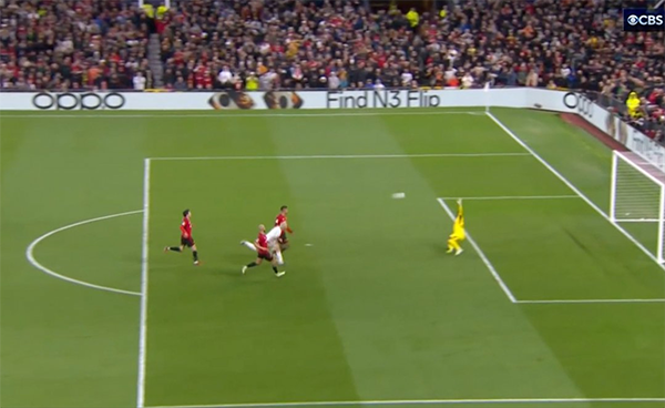 首先,奥纳纳在曼联没有控球时,倾向于站在球门线上,此时他比德赫亚还要德赫亚,而且门线技术完全比不上32岁的西班牙门神。故此,对手要求前锋尽早射门,因为奥纳纳的站位让他无法封堵更大的角度。而且他一旦出击就特别喜欢提前倒地,对手轻易就能找到射门角度。