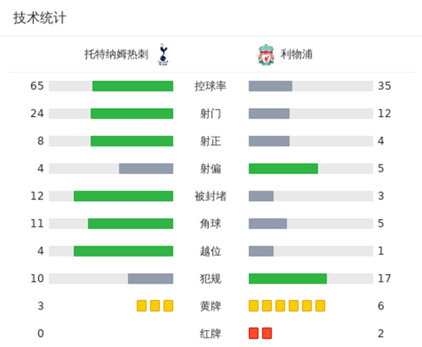 热刺2-1利物浦 迪亚斯越位误判琼斯若塔染红