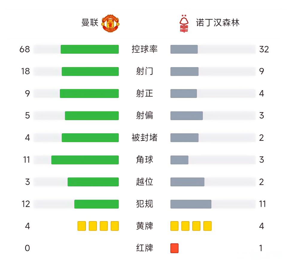 全场比赛结束,曼联3-2逆转诺丁汉森林。