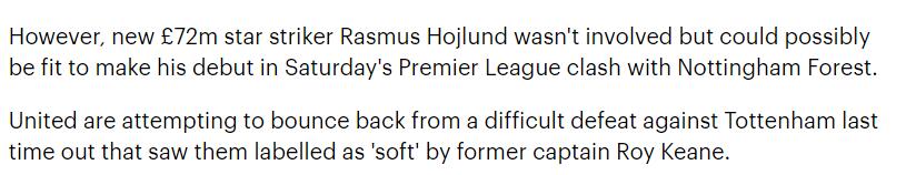 霍伊伦德加盟时被发现存在背部应力性骨折风险,因此一直在休养。然而,现在他有可能被提前启用,原本滕哈格预定其出场的时间是下月初做客阿森纳的强强对话。