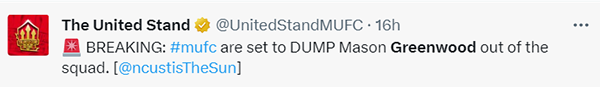格林伍德为曼联出场129次,打入35球,他与俱乐部的合同到2025年,并有一年优先续约权。但在2022年1月22日1-0击败西汉姆的比赛后,青木再也没有为红魔出过场。