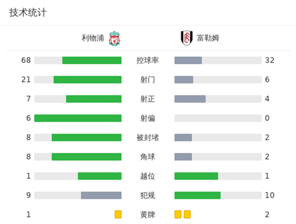 利物浦2-1富勒姆 努涅斯助攻双响+失良机