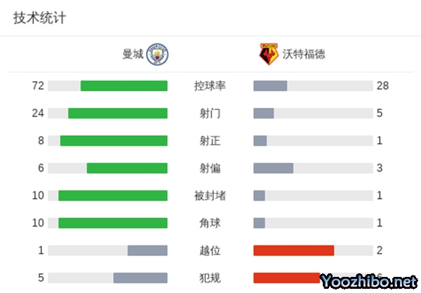 第4分钟,曼城闪击得手!沃特福德后场出球失误,格拉利什左路横传多库点球点附近扣过防守球员后推射破门,曼城1-0沃特福德。