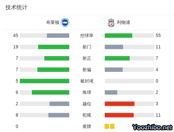 第46分钟,利物浦打破僵局!加克波左路拿球内切到禁区一脚小角度抽射破门,布莱顿0-1利物浦。