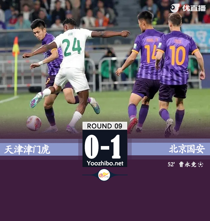 24直播网讯:北京时间4月30日19:35,中超联赛第9轮,天津津门虎主场迎战北京国安。上半场张源蹬踏谢维军脚踝,被红牌罚下,两队暂0-0战平;下半场阿德本罗助攻曹永竞破门,最终十人北京国安1-0天津津门虎,迎来三连胜,暂时升至积分表第3位,天津津门虎则遭遇三连败。