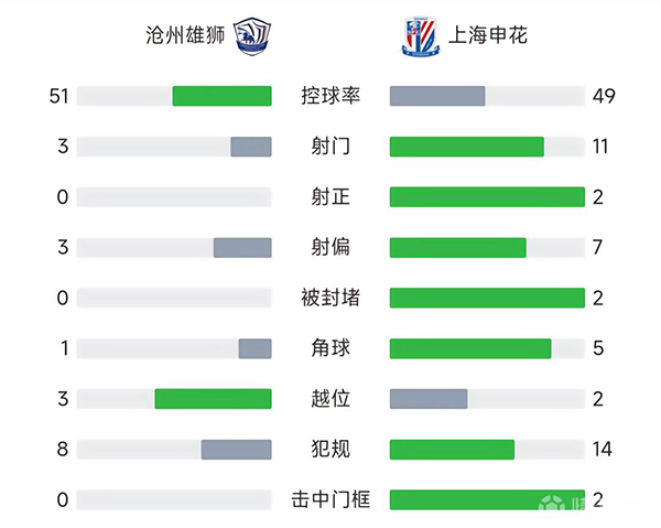 全场比赛结束,最终沧州0-1申花。