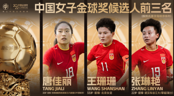 由于中国足球整体低迷,在看到中国金球奖再次迎来颁奖典礼时,球迷也对此进行了调侃一番,其中出现最多的评论是嘲讽奖项和李铁,不少球迷调侃认为这个奖项该颁给铁子。显然,这些都是针对男足的,中国女足各项奖项还是被看好,中国女足金球奖前三候选人为王珊珊、唐佳丽、张琳艳,女足国少队员刘晨和黄嘉欣入围金童奖候选前三,与男足的王钰栋竞争;中国女足主帅水庆霞则入围金帅奖前三,与申花主帅吴金贵、大连人主帅谢晖竞争。