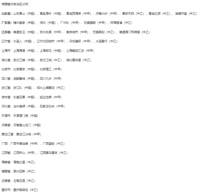 广东省和江苏省各有5支职业球队获得了足协的准入审核。