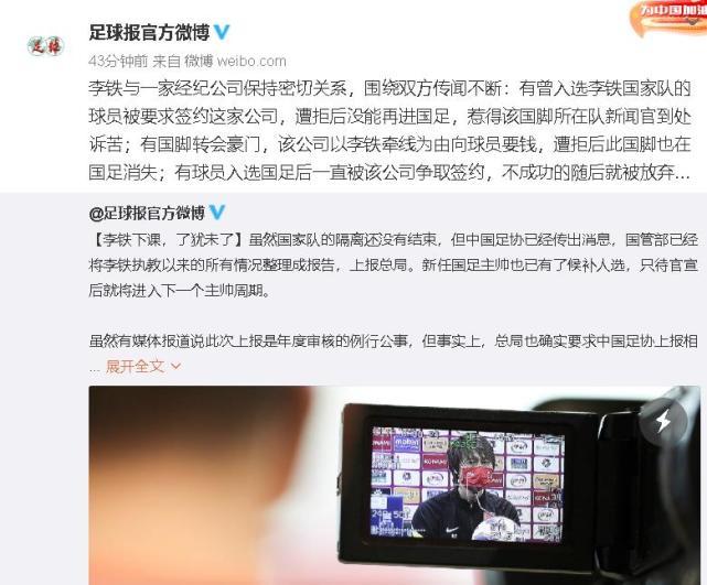 根据足球报的爆料,有曾入选国足的球员被要求签约这家公司,该球员拒绝后,再也没有入选国足。足球报还指出,某国脚转会到国内某豪门后,该经纪人以李铁牵线为由索要费用,该国脚拒绝支付费用,从此从国足名单中消失。