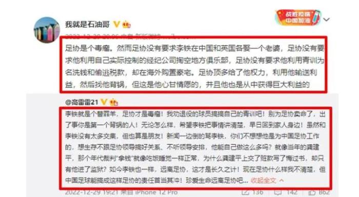 事实上,这一只大鱼并非第一次露面,在李铁落网没有多久,著名的足球媒体人“我就是石油哥”就爆料,李铁有两个妻子,第一个是处于美国的结发妻龙飞,龙飞和孩子早已经拿到了绿卡,如今在美国生活。而另一个是处于英国的一个华人美女,为什么说华人美女呢?因为这个拥有巨额财产的美女早已经入籍英国,而且被曝出还和李铁有一个儿子。