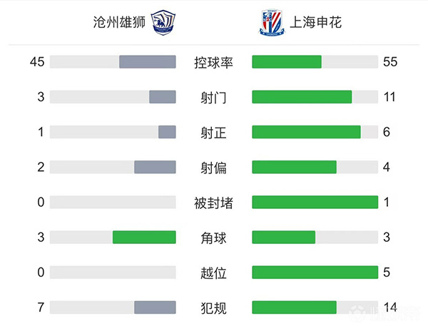 全场比赛结束,最终上海申花3-0沧州雄狮。
