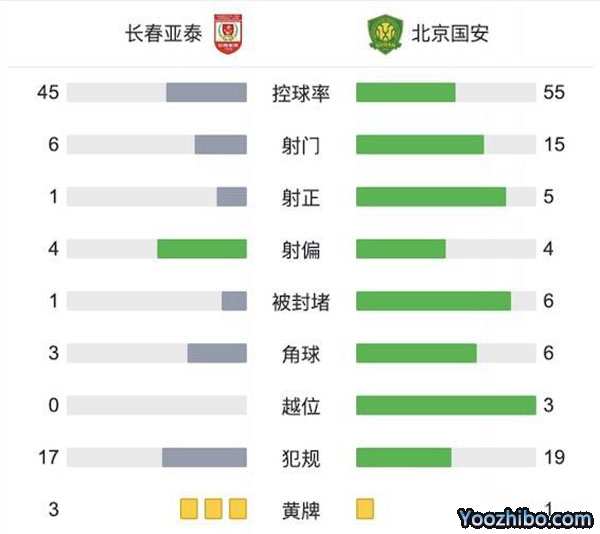 全场结束,最终北京国安1-0击败长春亚泰,近六轮不败。