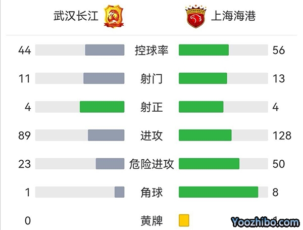 全场比赛结束,上海海港2-1武汉长江。
