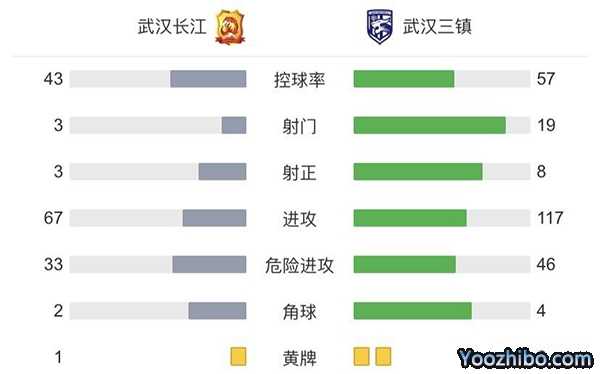 全场比赛结束,武汉三镇3-1击败武汉长江。