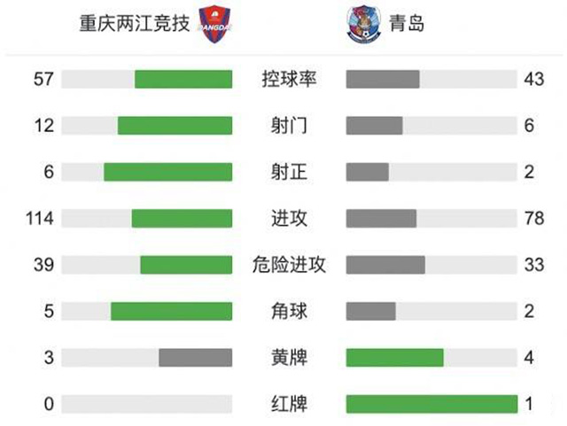 第95分钟,刘佳燊故意犯规被主裁判直接出示红牌罚下。全场比赛结束,重庆两江竞技1-0青岛。