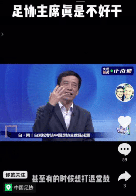 足协主席陈戌源:之前我骂别人,现在别人骂我!