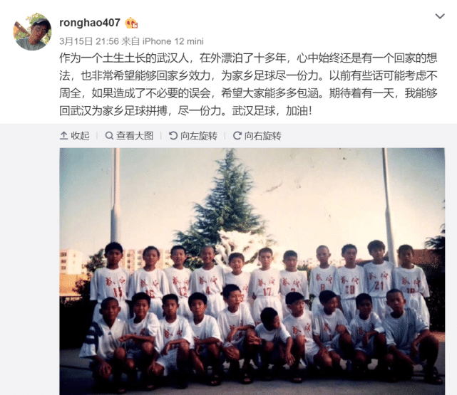隔天道歉!荣昊称加盟武汉三镇就是回馈家乡足球