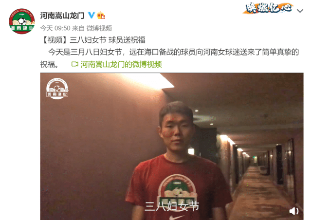 今天是三月八日妇女节,远在海口备战的球员向河南女球迷送来了简单真挚的祝福。