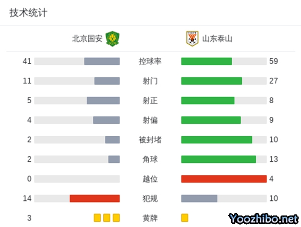 国安2-0泰山主场6连胜 泰山3轮不胜 国安1分钟2球